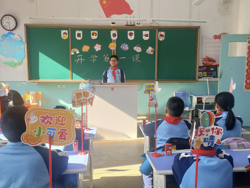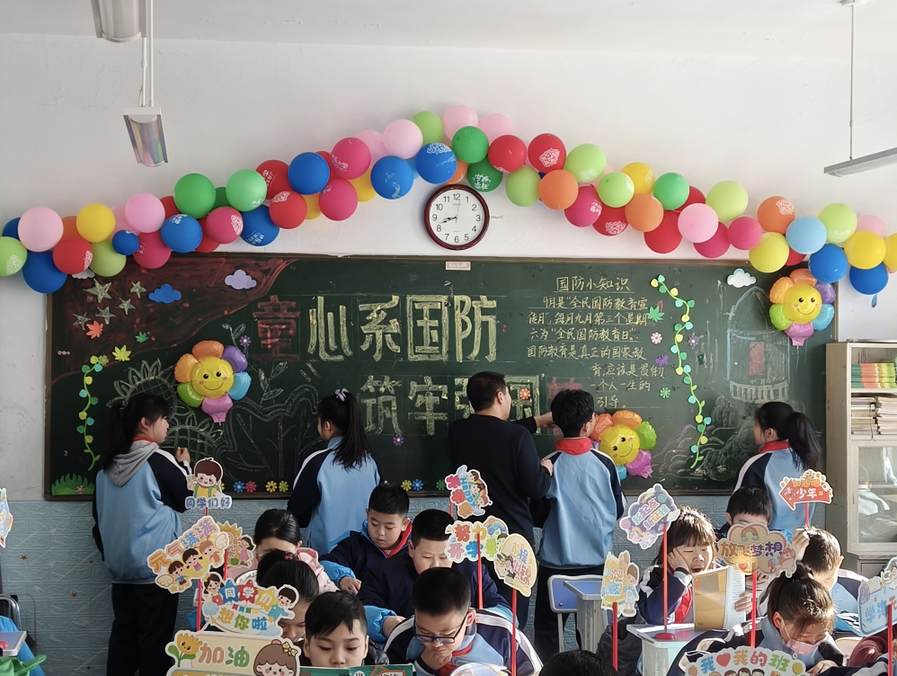阳光下,五星红旗格外鲜艳,红领巾分外耀眼,雄壮的国歌声响彻校园。各班首先开展了“开学第一课”安全教育主题班会,为同学们普及校园安全知识,从防火、防溺水、防交通事故及毒品的危害等方面对学生进行安全教育,每一项都与我们的日常生活息息相关。随后孩子们在老师的指导下,绘制以国防教育为主题的黑板报,进一步强化国防教育。