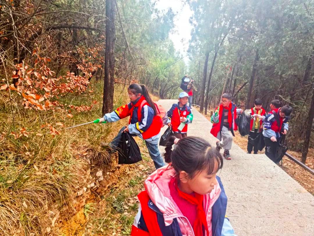 3月7日下午,安徽省巢湖市世纪新都小学关工委组织学生走进汤山开展“红领巾护青山,‘小雷锋’净汤山”志愿服务活动。