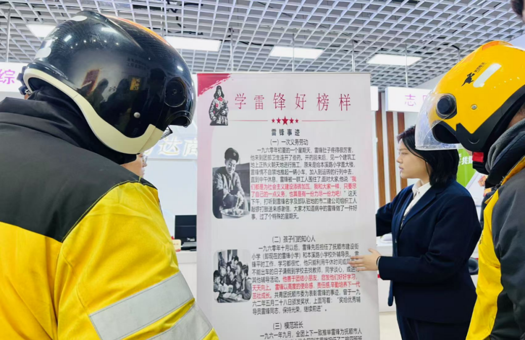 为贯彻落实习近平总书记关于深入开展学雷锋活动的重要指示精神,大力弘扬雷锋精神和“奉献、友爱、互助、进步”的志愿精神。3月5日,大庆市让胡路区旭园街道阳光嘉城四社区关工小组举行了“讲述雷锋故事 践行雷锋精神”学习雷锋活动月启动仪式,辖区新经济新业态行业代表、“骑手先锋”志愿服务队代表,共计20余人参加活动。