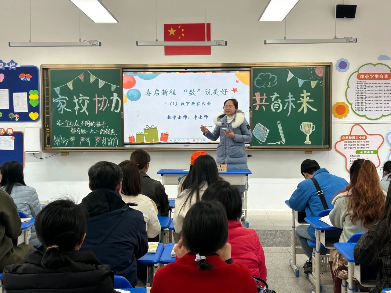 带着一份期许,怀揣着一份信任,家长们如约而至。教室里播放着“我与班级同成长”的视频,回望孩子们在校的多彩时光,感受孩子们的成长与进步。在这轻松愉快的氛围中开启了家长会之旅,共同谱写一场美好的相遇相知。