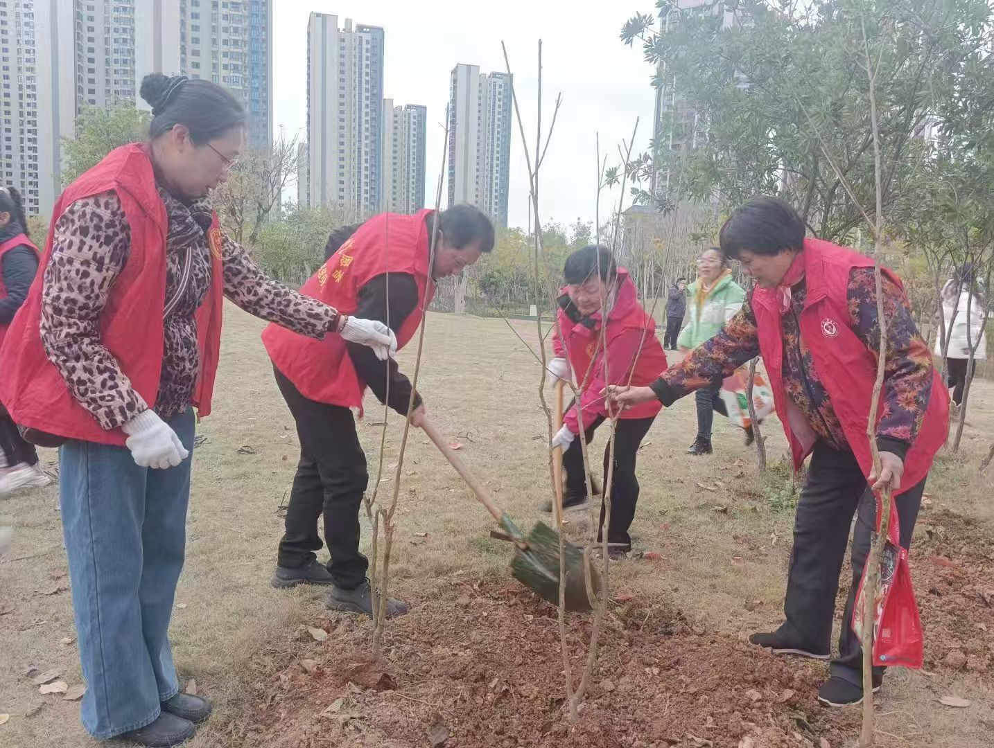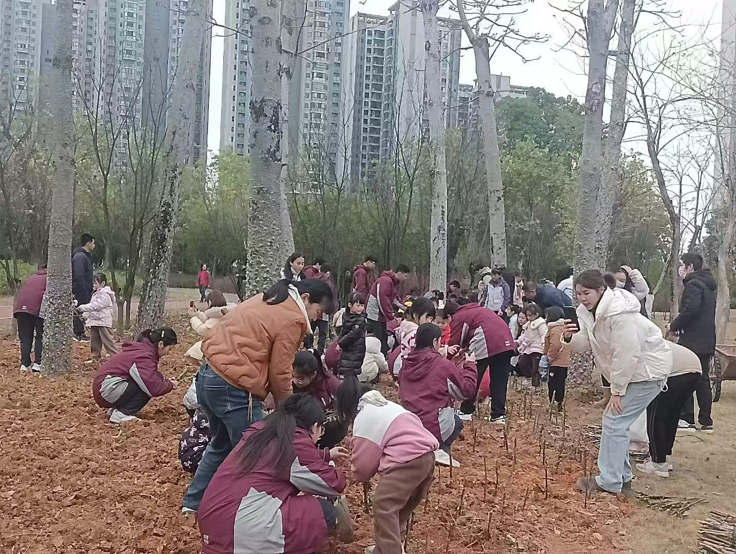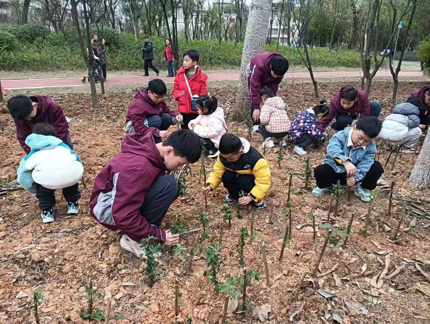 春风十里,正“植”有你。在小朋友区域:孩子们正津津有味感受着扦插的忙碌,此刻,小朋友们亲近自然、感受自然、享受自然、热爱自然,用小小的行动奉献力量,用稚嫩的心愿盼望美好绿色。在大朋友区域:大家齐心协力,手持铁锹、铲起泥土,一丝不苟地完成每一道工序,从挖坑整地、栽植树苗,到扶正压实、浇水灌根……现场气氛干劲十足。一株株新栽的树苗“安家落户”,增添了勃勃生机与绿色希望。