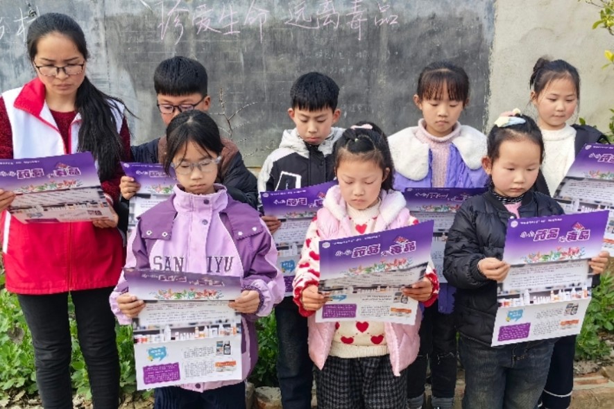 毒品一日不绝,禁毒一刻不止。为了进一步提高青少年对毒品危害的认识,切实加强青少年对远离毒品的意识,3月9日,安徽省阜阳市阜南县于集乡关工委志愿者,入村入户组织青少年学生开展“禁毒宣教,从娃抓起”主题教育活动。