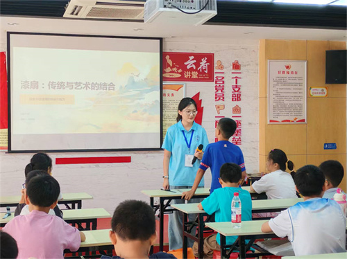 金秋送爽,教师节悄然而至。为传承尊师重道的中华美德,丰富辖区青少年的文化生活,9月8日,安徽省合肥市包河区烟墩街道云川社区关工委携手合肥市爱邻社会工作服务社于社区新时代文明实践站开展“感恩教师节”主题手工活动。孩子们亲手制作漆扇,以独特的方式表达对老师的深深感恩与美好祝福。