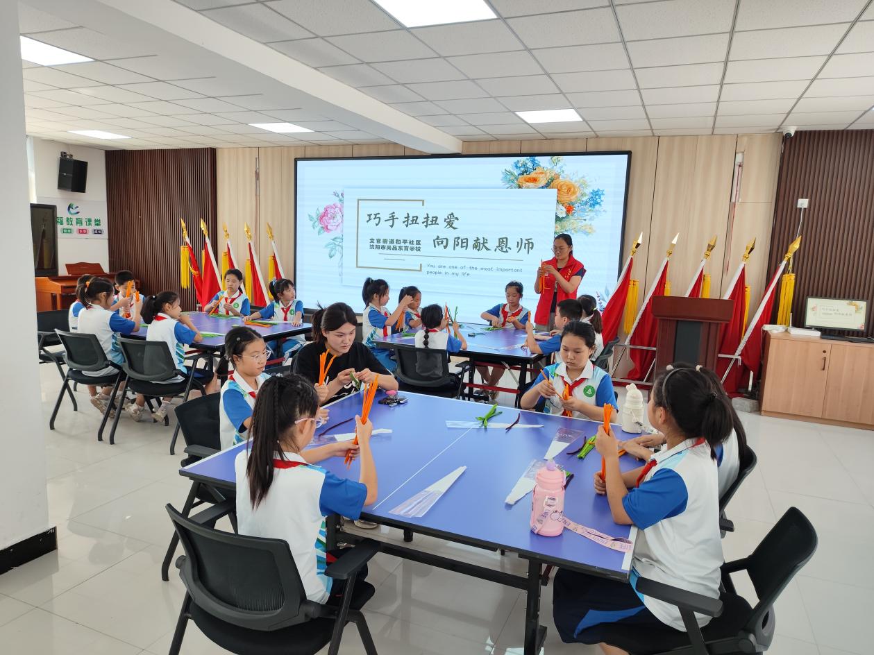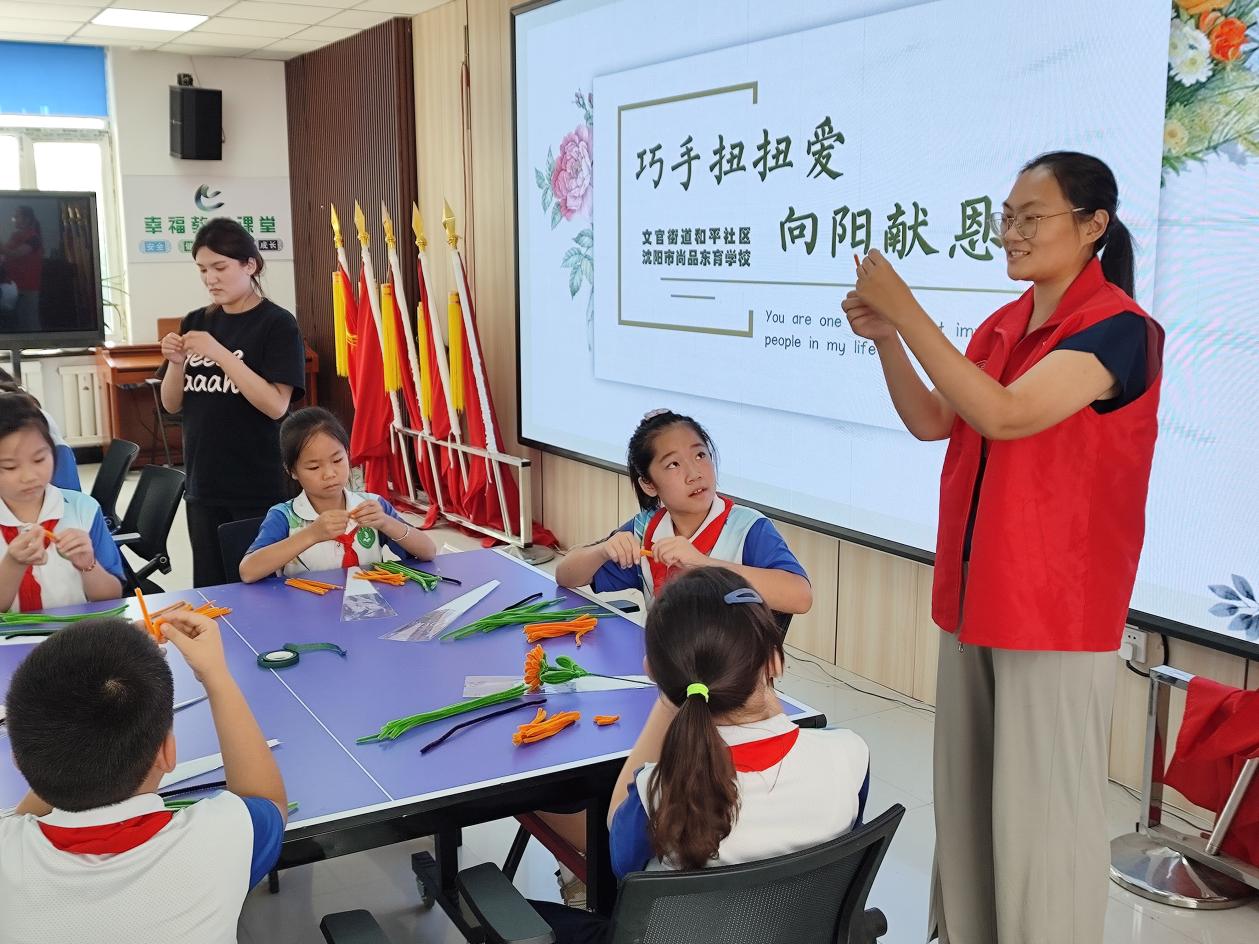 在教师节即将到来之际,为弘扬尊师重教的传统美德,同时培养小朋友的动手能力,大东区文官街道和平社区党委携手文官街道文化活动站、沈阳尚品东育学校一起,组织辖区小朋友开展“巧手扭扭爱 向阳献恩师”手工活动。带领孩子们用五彩扭扭棒制作出充满童趣的向日葵花束,为辛勤耕耘的老师们献上节日祝福。