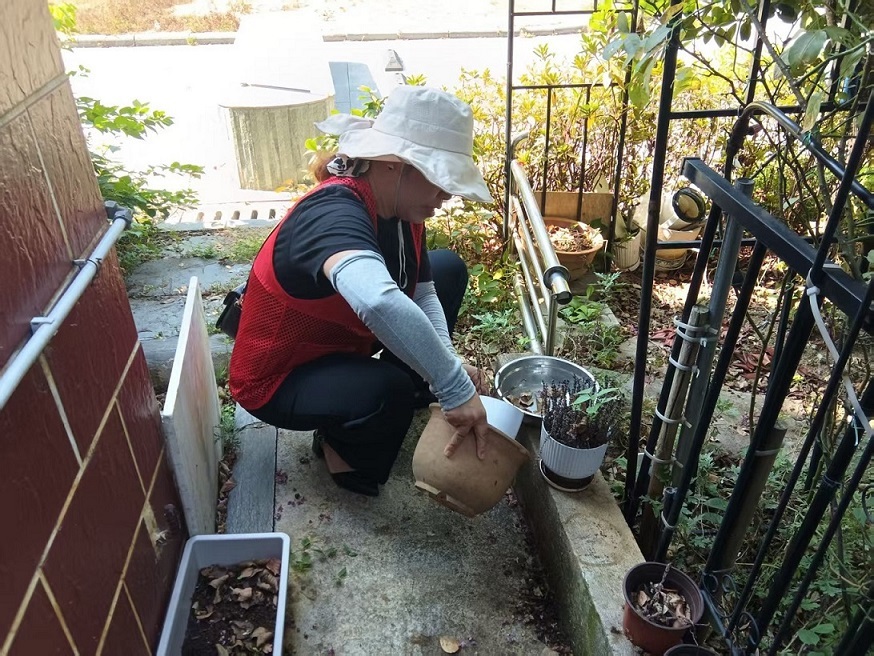 活动中,小区物业保洁人员重点对绿化带、单元楼道、垃圾桶等公共区域进行药物消杀,同步对楼道小广告、杂物堆积、车辆违规停放等不文明现象开展集中整治。党员和关工志愿者积极发挥带头作用,通过入户宣传方式,向居民普及基孔肯雅热防控知识,特别提醒家中有水生植物的住户应每3-5天换水一次,并清洗容器和根须。同时,动员居民及时清理、翻倒院内、平台等区域的闲置盆罐、轮胎等容器中的积水,切实从源头控制蚊虫孳生,降低疾病传播风险。