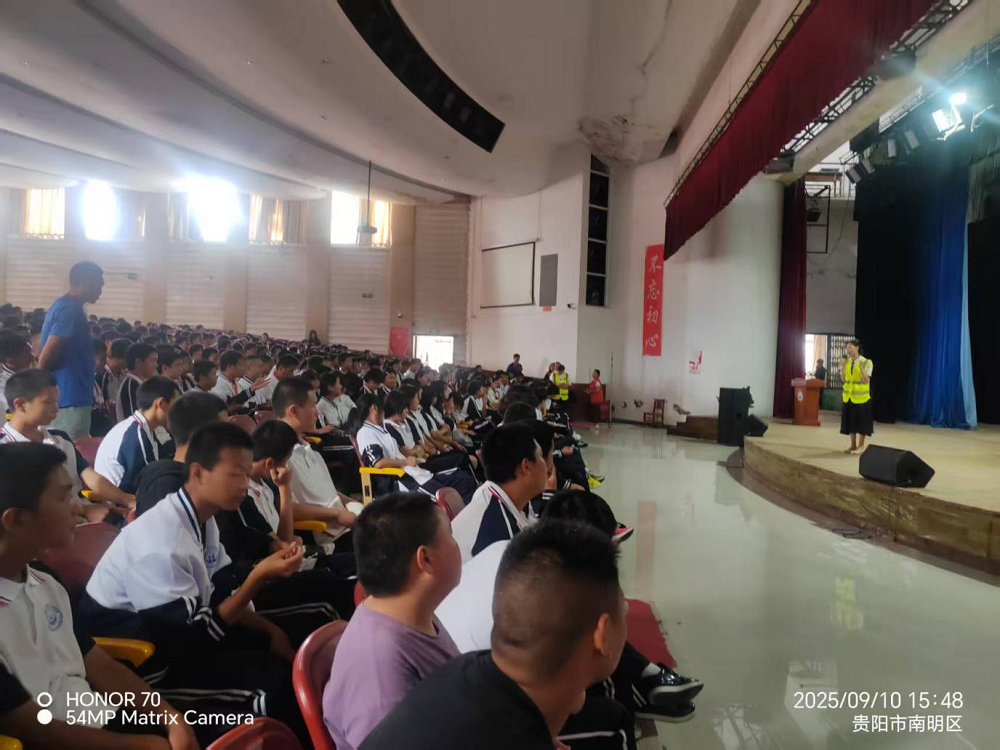 为进一步增强辖区中职学生的安全防范意识和自我保护能力,营造安全、健康、和谐的校园环境,9月10日,贵阳市南明区二戈街道办关工委联合八公里社区、贵阳市中山科技学校共同开展了一场涵盖校园霸凌、预防电信诈骗、禁毒知识及防溺水安全知识的综合性教育讲座。