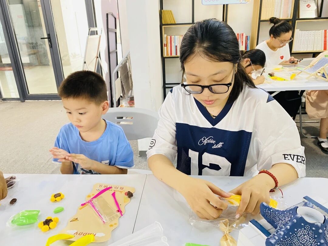 活动当天,社区活动室内洋溢着温馨与欢乐的气氛。工作人员提前准备好了色彩缤纷的超轻粘土、制作工具以及精美的包装材料。在专业手工老师的耐心指导下,孩子们和家长们兴致勃勃地开始了创作。揉、捏、搓、压、粘……简单的粘土在大家的巧手下被赋予了生命,变成了一朵朵栩栩如生的玫瑰花、向日葵,或是充满童趣的创意花朵。孩子们全神贯注,家长们从旁协助,亲子间默契配合,其乐融融。