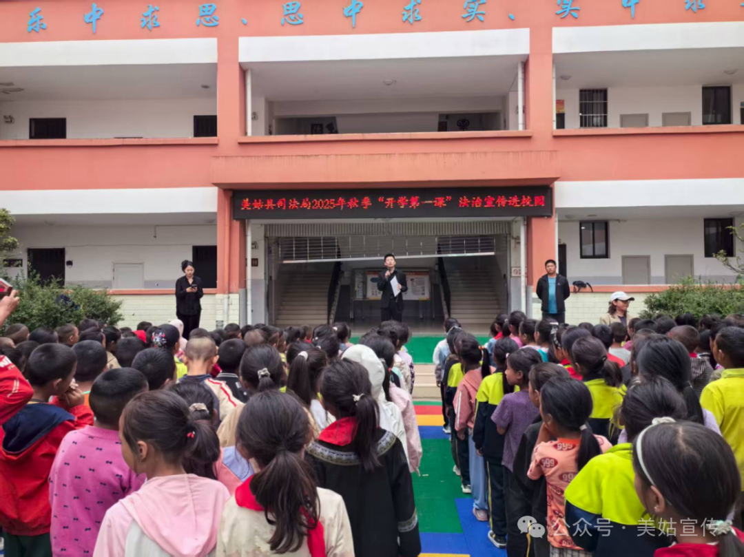 为进一步加强青少年法治教育,增强未成年人自我保护意识和能力,有效预防和减少校园欺凌事件发生,营造安全、和谐、健康的校园环境。9月10日—11日美姑县关工委联合县司法局于深入新桥镇小学、拉马镇小学开展美姑县2025年秋季“开学第一课”法治宣传进校园活动。
