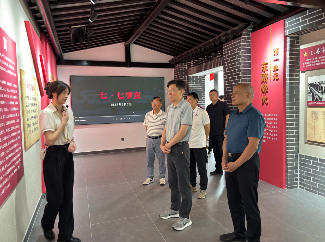 走进项桥村中共太仓特区工委旧址陈列室,调研组一行瞻仰了抗战时期革命先辈留下的一件件文物,聆听了江南抗日义勇军东进抗日,在项桥——中共太仓特区谱写的可歌可泣抗日故事。调研组指出,项桥村关工委和校外教育辅导站要用活这个新开辟的爱国主义教育基地红色资源,讲好太仓抗日故事,弘扬身边红色文化,传承本土抗击外来之敌的大无畏精神,铭记历史、致敬英雄,让革命先辈们铸就的“老区精神”,成为激励青少年成长的最宝贵精神财富。同时,调研组对项桥村依托红色资源,进一步提升校外教育辅导站质效,提出了建设性的建议和意见,希望市、镇、村三级形成共识和合力,齐心协力培育全市村级校外教育辅导站新亮点。