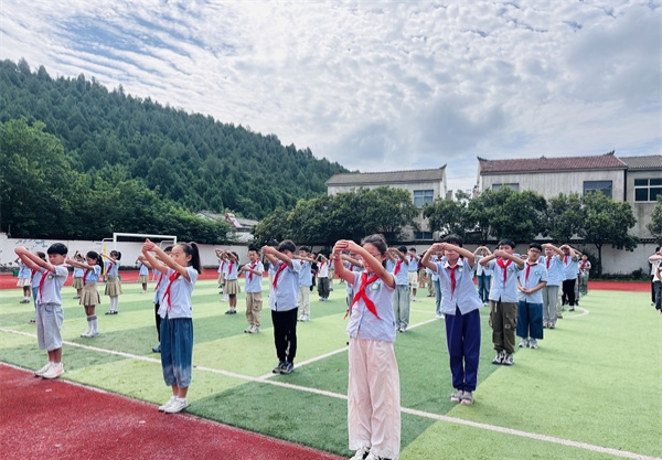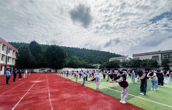大课间时段,校园内响起庄重的音乐,全体学生以传统“拜师礼”向教师致敬。学生们整理衣冠、拱手弯腰,用规范的礼仪表达对老师的感恩之情;教师们则面带微笑,以鞠躬回礼,在一礼一回间,传递着师生间的真挚情感,也让传统文化在校园中得以传承。