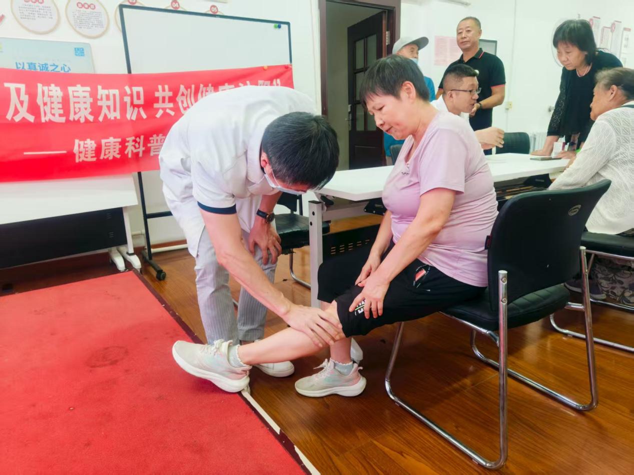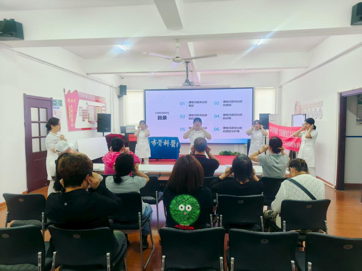 活动伊始,医护人员带领大家一起做起了耳朵保健操。人的耳朵上密布着超过200个穴位,对应着体内各大系统 ,通过刺激这些穴位,能辅助诊断并治疗多种疾病。医护人员一边讲解动作要领,一边亲自示范,大家纷纷伸出双手,跟随节奏,认真地进行耳部按摩。紧接着,腰椎间盘突出症的病因及诊断的知识讲座。医生介绍,该病由腰椎退变、长期劳损、外伤、受凉等引发,诊断需结合腰痛、下肢放射痛等症状,配合直腿抬高试验等体格检查,以及腰椎X光、CT、MRI等影像学检查。医生们耐心地为每一位居民解答问题,针对居民提出的关节疼痛、颈椎病、肩周炎等各种骨科问题,进行详细的分析和解答,并给出专业的治疗建议。