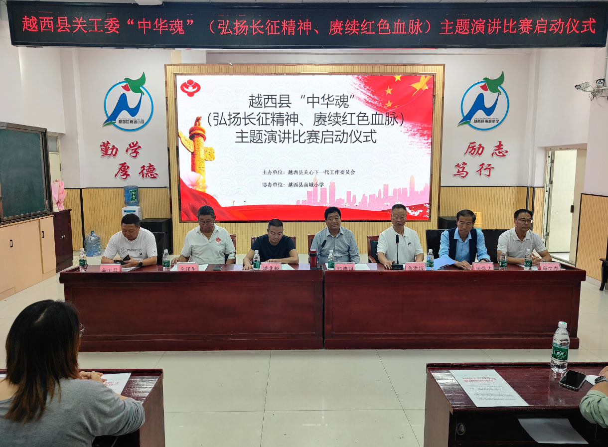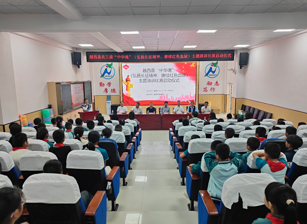 9月11日下午,四川省凉山州越西县关工委在南城小学报告厅举行“中华魂”(弘扬长征精神、赓续红色血脉)主题演讲比赛启动仪式,县关工委执行主任邱德明出席仪式,“五老”宣讲员、各中小学校负责老师,以及南城小学校学生代表参加仪式。