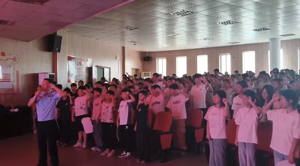 “请大家举起右拳,和我共同宣誓:珍爱生命,远离毒品,自觉抵制毒品侵蚀,积极投身于禁毒斗争行列,为禁毒事业贡献青春、智慧和力量!”参加讲座的全体师生在戒毒所民警的带领下进行了庄严的宣誓,掷地有声。宣誓仪式让学生们感受到了拒绝毒品的严肃性和重要性,坚定了拒毒决心。