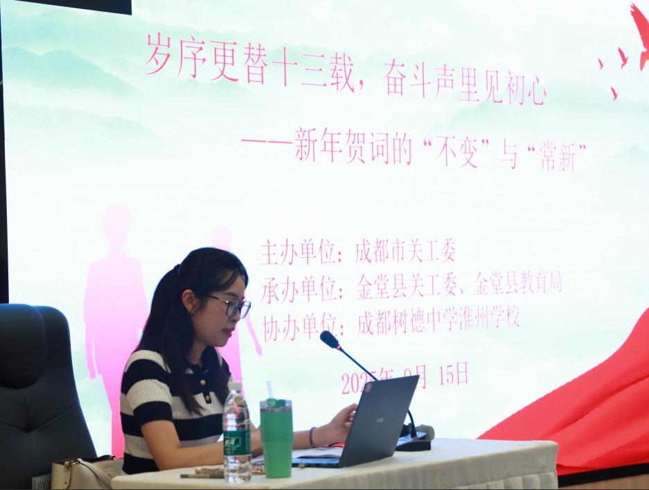 金堂县宣讲团成员袁明辉、宋小鸥分别以《从“被照顾”到“会照顾”——当好家风传承人程》《岁序更替十三载-新年贺词的“不变”与“常新”》为题进行专题宣讲。袁老师从青少年学生要增强学习成才意识、要弘扬好的家教家风等方面进行宣讲,希望学生们自觉弘扬中华民族的传统美德和道德观念,传承好的家教家风。宋老师通过“新年贺词”这扇窗,与青年学生一起聊“不变”与“常新”,引导学生们看奋斗路上的中国初心。