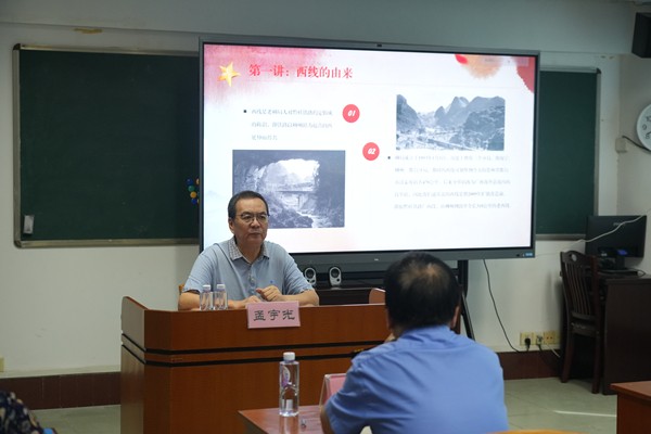 孟宇光传达了在呼和浩特局召开的国铁集团关工委经验交流和理论研讨会精神,介绍黎湛线历史,随后以生动的语言和详实的史料,将青年职工们的思绪带到了早期黔桂铁路建设者的艰难岁月。
