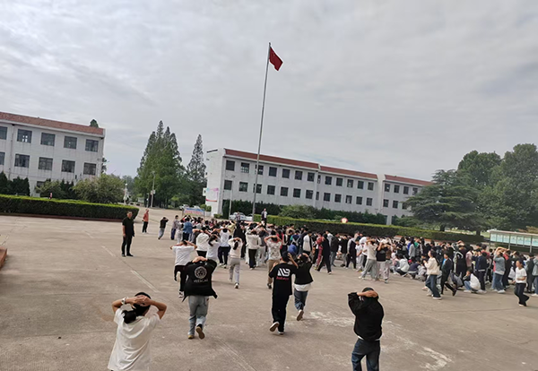 整个演练过程紧张有序、有条不紊。全校师生服从安排,校领导以及相关安全人员坚守岗位,引导学生有序疏散。各班到指定地点后,随即清点本班人数,并及时汇报各班情况。