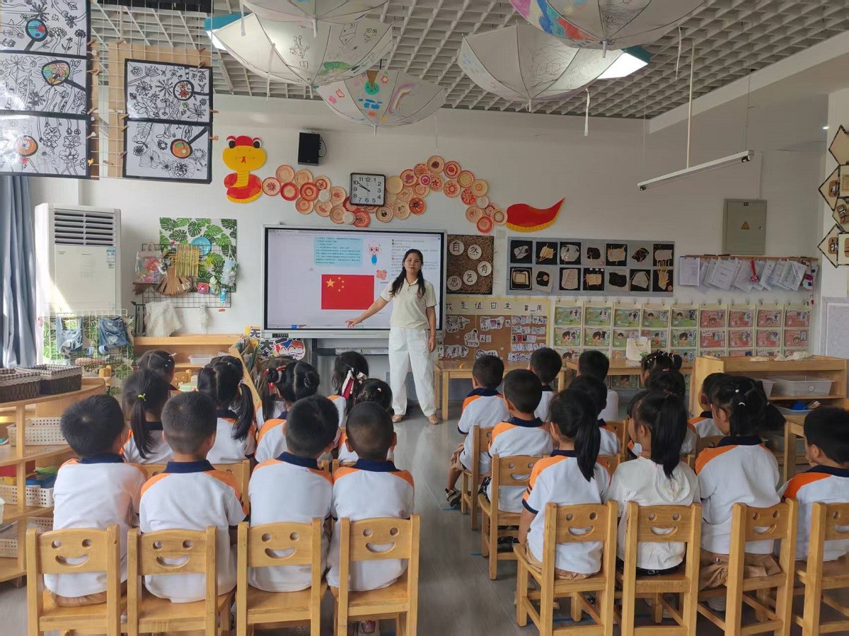 忆史敬国,幼儿启蒙。开展班级主题教育,各班教师通过生动的历史故事、适合幼儿的动画视频、朗朗上口的爱国儿歌等形式,向幼儿通俗讲述 “九一八” 事变,将历史元素转化为幼儿能理解的内容,用趣味互动启发幼儿的爱国情怀。