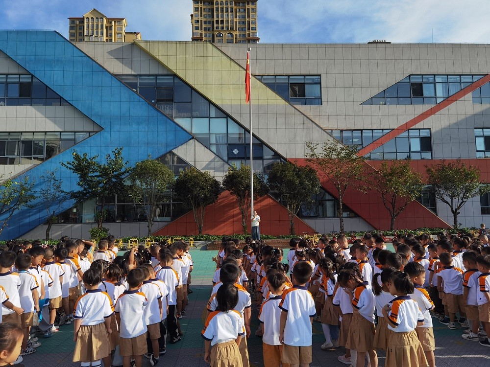 重温历史,觉醒少年。9月18日上午,开展升旗仪式,仪式上全体师幼行注目礼,伴随嘹亮国歌致敬祖国。10 点整,警报声准时响起,全体人员肃立默哀,缅怀在“九一八”事变中遇难的同胞与为国捐躯的英烈。随后,党支部副书记以幼儿易懂的语言作国旗下讲话,围绕“九一八”事变进行分享,将“勿忘国耻、铭记历史”的种子播撒进孩子们心中。