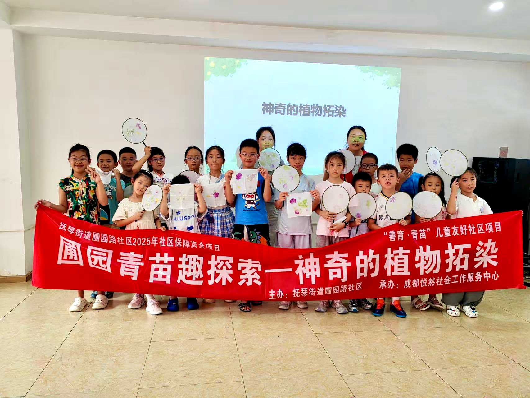 为激发社区儿童对自然世界的兴趣与好奇心,提升其动手能力和创造力,2025年9月14日,由四川省成都市金牛区抚琴街道圃园路社区关工委主办、成都悦然社会工作服务中心承办的“神奇的植物拓染”自然科普活动。吸引了众多社区儿童积极参与。孩子们通过亲手体验传统植物拓染技艺,深切感受大自然的独特魅力,在实践中有效提升了审美与动手能力。