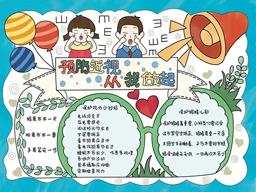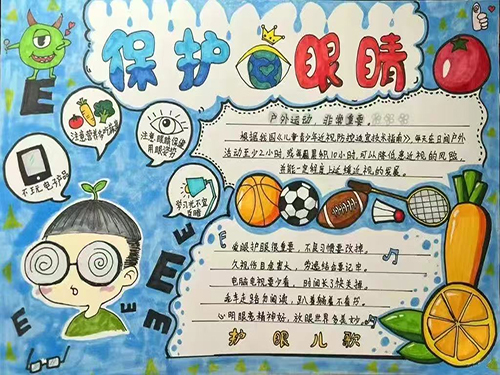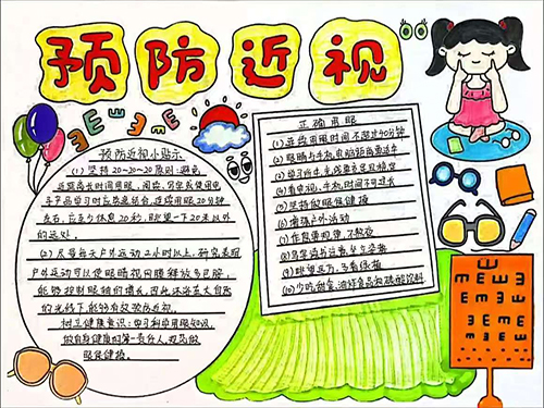 为了让护眼理念深入人心,各班级还举办了一场创意十足的手抄报比赛。同学们充分发挥自己的想象力和创造力,用五彩的画笔绘制出一幅幅精美的手抄报。这些手抄报内容丰富,涵盖了近视防控知识、护眼标语、护眼小妙招等,将护眼理念以艺术的形式展现出来。通过这次比赛,不仅锻炼了同学们的动手能力和创新思维,还让他们在创作过程中更加深入地了解了近视防控知识。