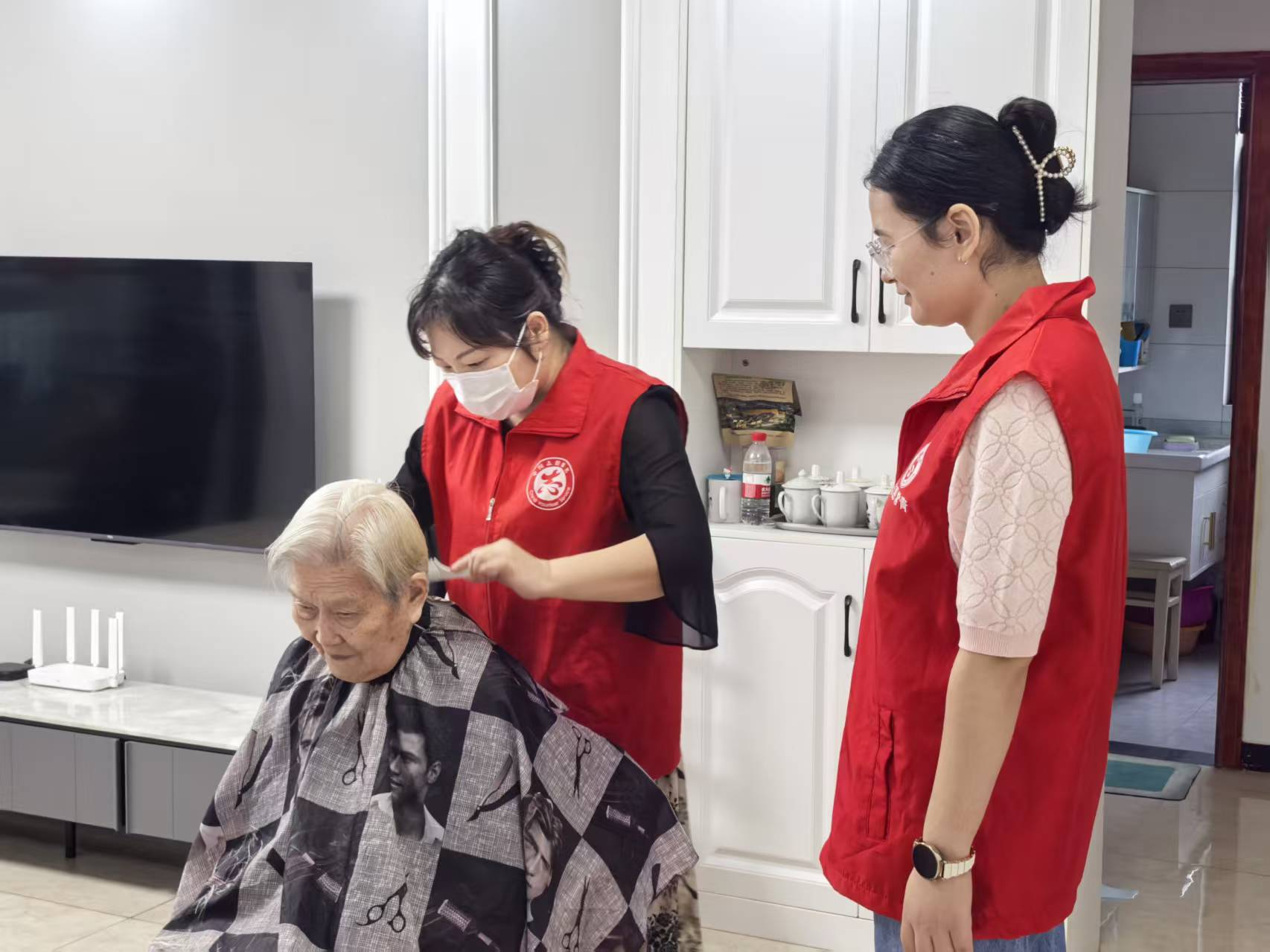 这是常青街道油坊岗社区关工委、妇联联合“大爱合康”党建引领基层健康治理微公益创投“向阳守护健康”项目,开展“入户探访+便民理发”志愿服务,为辖区高龄、独居老人解决“理发难”问题。