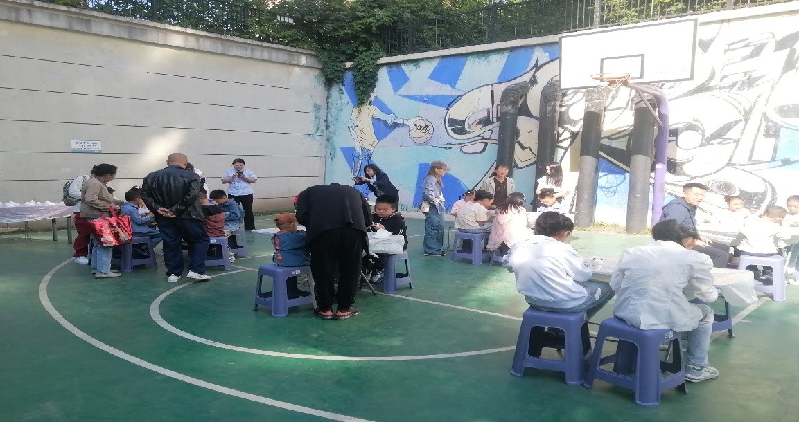活动尚未开始,篮球场便已聚集不少期待满满的小业主与家长。洁白的石膏娃娃整齐排列,水彩笔、调色盘等工具分类摆放,物业服务人员提前做好准备,引导孩子们有序挑选心仪的娃娃造型——从圆滚滚的卡通角色到憨态可掬的小动物,每一款都让孩子们爱不释手。