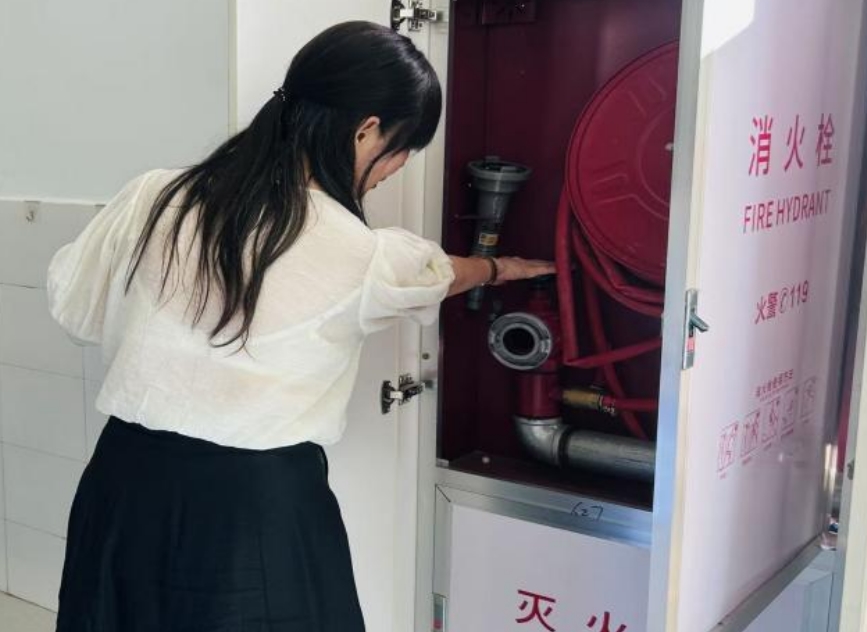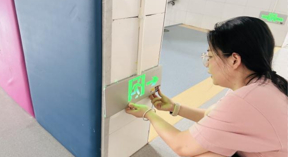 对校园内的灭火器、应急照明、疏散指示标志等消防器材逐一检查。查看灭火器压力是否正常、喷管有无破损;疏散指示标志方向是否准确清晰。
