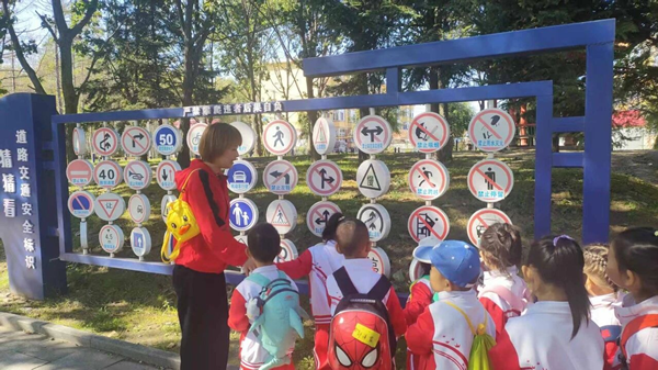 中班组以“安全小卫士”身份开启徒步之旅,在老师的带领下有序前往安全主题公园。通过模拟过马路、识别安全标识、学习简单急救手势等互动游戏,孩子们在轻松的氛围中掌握了“不跟陌生人走”“牢记家长电话”等基础自我保护技能,树立了初步的安全意识,也在徒步中感受了家乡公园的整洁与美丽。