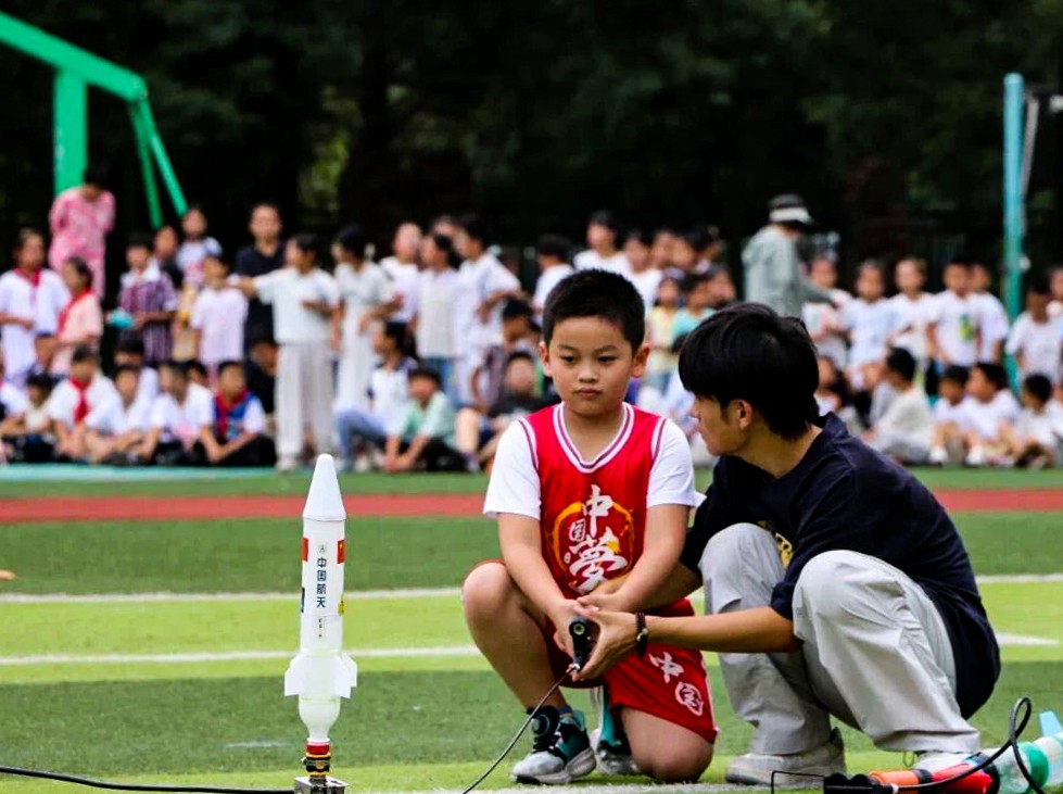 最受同学们欢迎的是飞行表演和学生体验环节。三角翼、电动滑翔机等各类飞行器在飞行员的操控下翱翔蓝天,做出各种特技动作,引来阵阵掌声。在体验区,学生们在大学生志愿者指导下,亲手操作无人机、发射水火箭、体验电脑模拟飞行,在实践中感受科技的无限魅力。