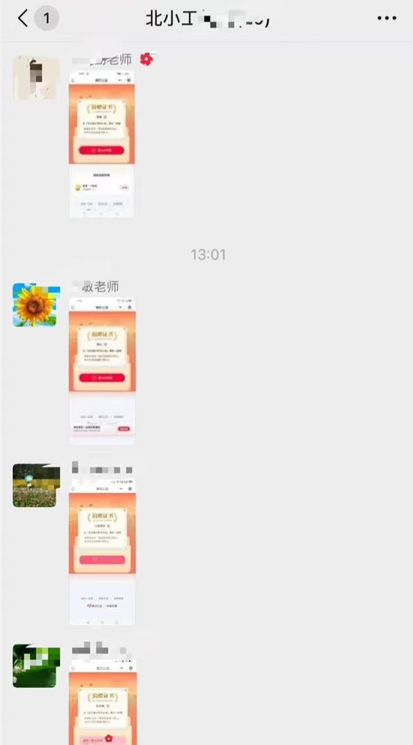 活动启动前,学校关工委按照通知要求,多维度开展宣传动员工作:利用班级微信群,向师生传达活动精神——按以往惯例,提倡教师捐出一天的工资收入(100元或以上),鼓励学生捐出一天的零花钱(金额不限),同时着重强调“自愿参与”的核心,确保每一份爱心都源于自主意愿。9月12日活动当天,学校以高效、有序的方式推进捐款工作:各班级统一引导师生及家长识别“捐款专用二维码”,并反复提醒“仅此一码,请注意识别”,避免出现误扫、错捐情况。教师群体率先响应,通过二维码主动完成捐款,用实际行动为学生树立公益榜样;学生们则在家长的陪伴下,认真操作扫码流程,将自己的零花钱转化为爱心捐赠,不少孩子还兴奋地分享“能帮助别人很开心”的想法;家长们也积极配合,不仅协助孩子完成捐款,部分家长还主动参与其中,形成“家校联动献爱心”的良好氛围。