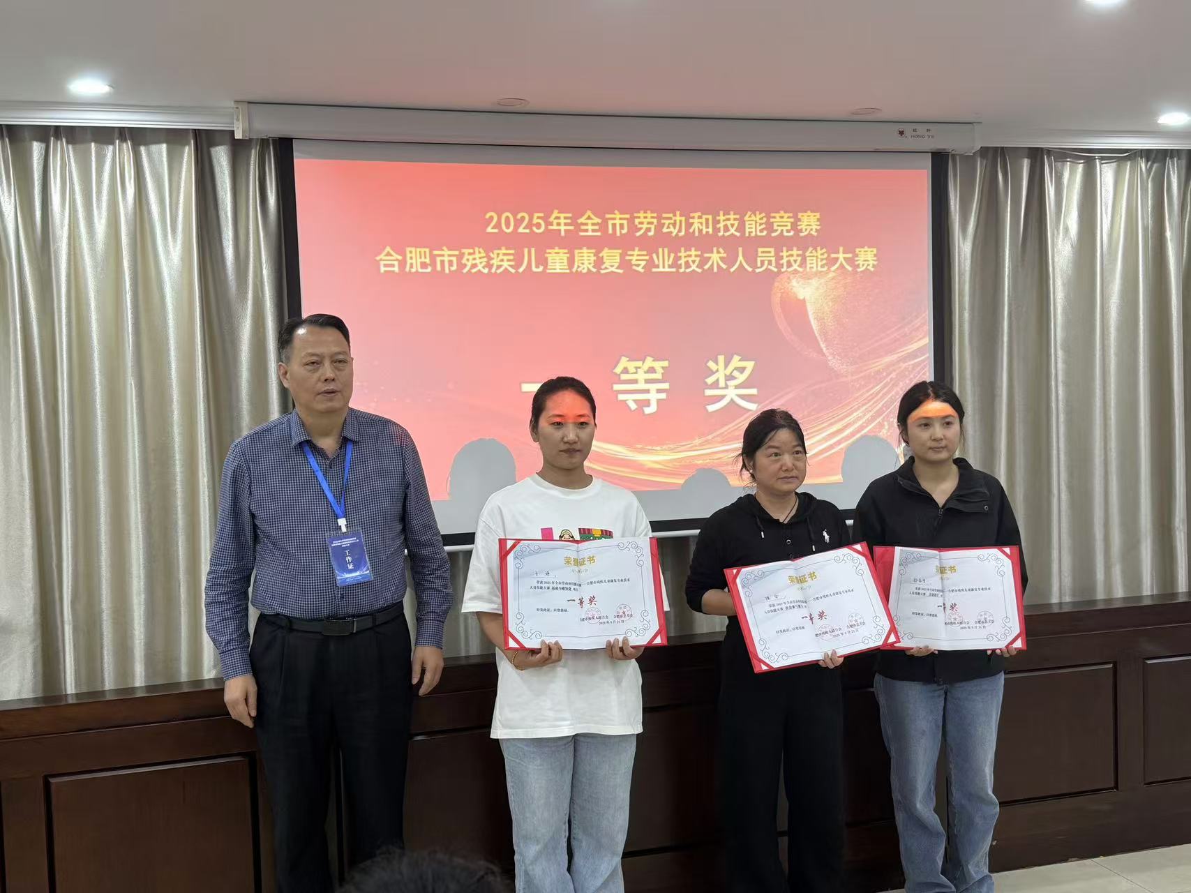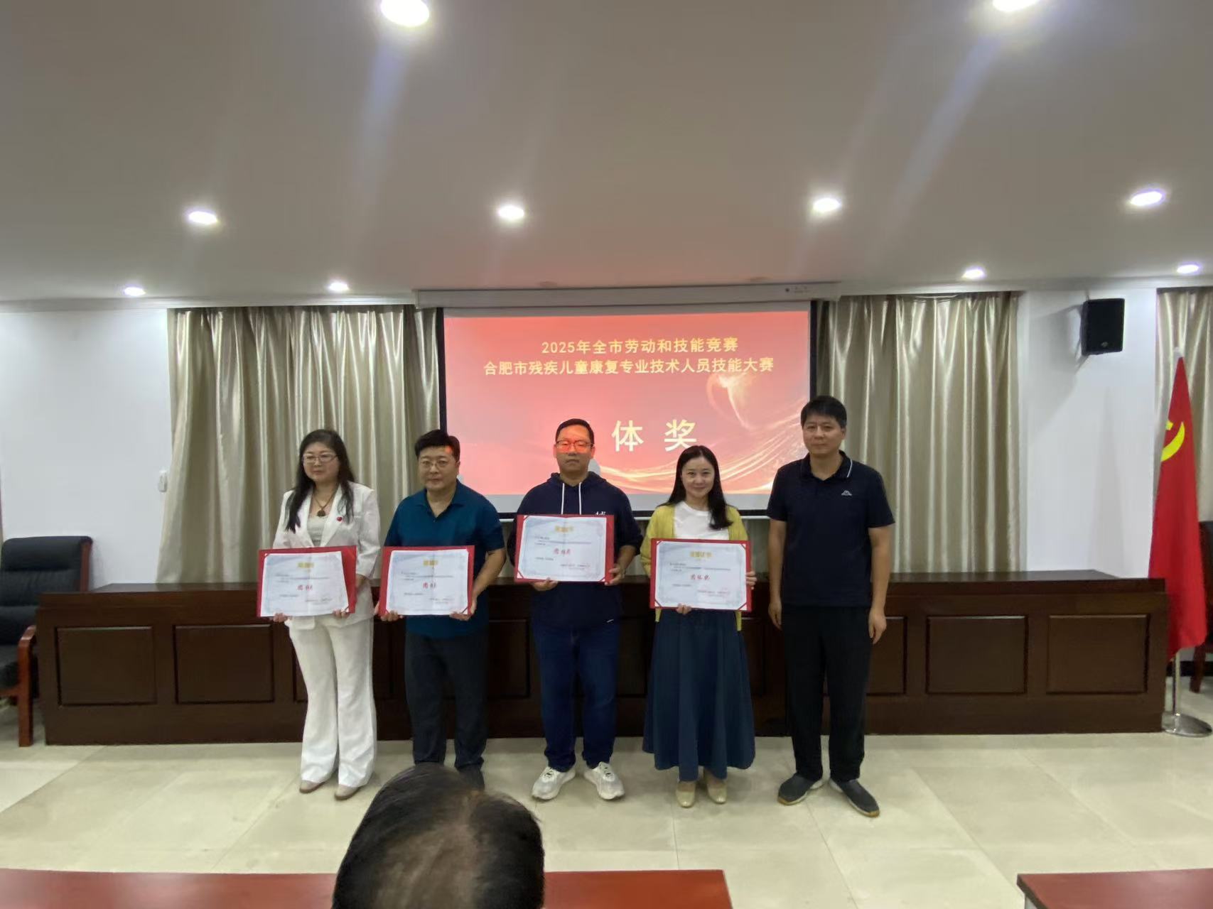 近日,在合肥市残联举办残疾儿童康复专业技术人员技能大赛中,庐阳区取得优异成绩。庐阳区残联获得团体奖,其中,庐阳区华星残疾人康复中心获得优秀组织奖,运动和感知觉第一名,言语语言第二名,社会参与能力第三名;一等奖一名,二等奖一名,三等奖一名。