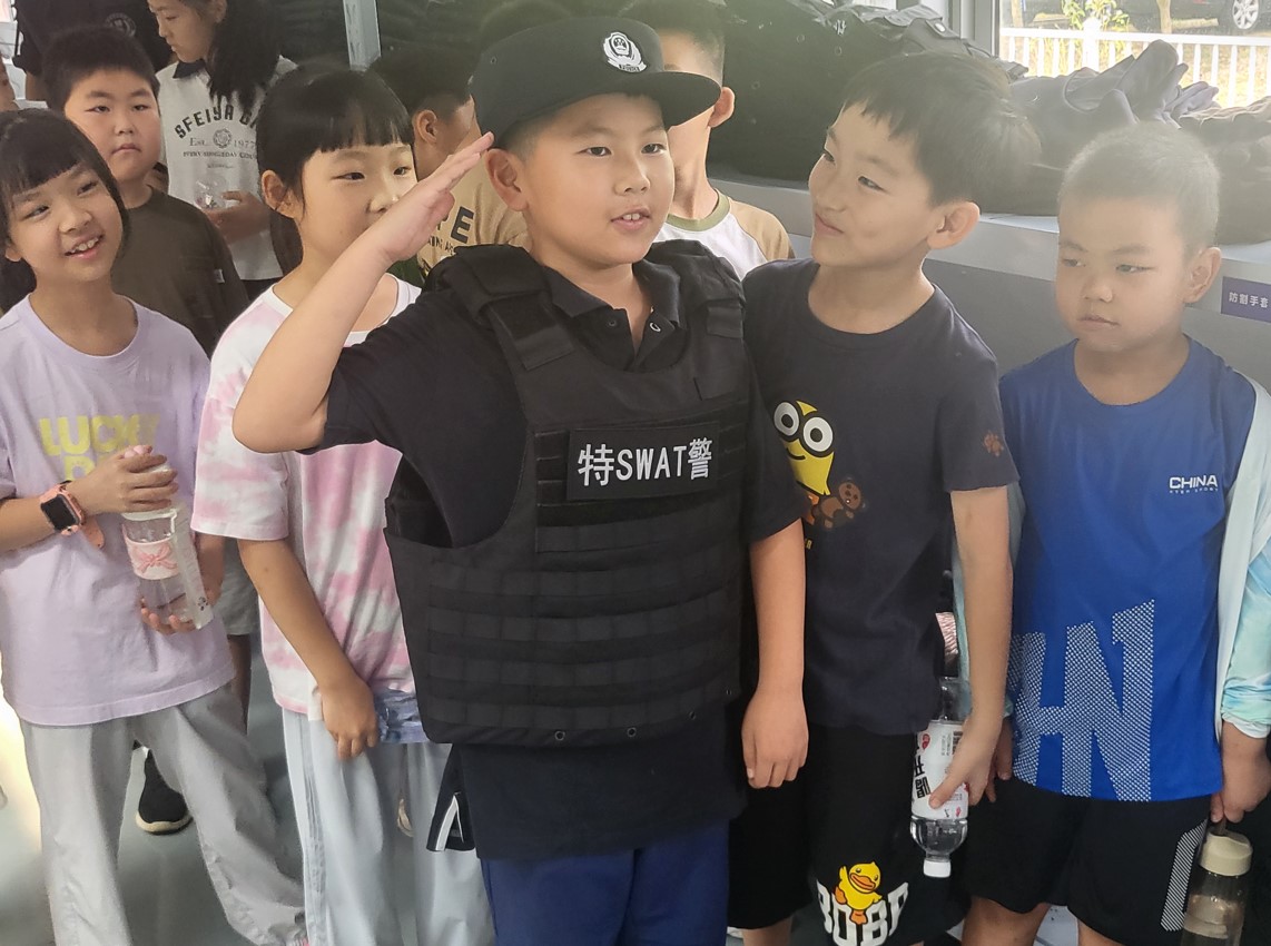活动现场,警务人员化身 “安全导师”,带领青少年们参观警用装备展示区。从各类警用器械到防护装备,民警用通俗易懂的语言讲解其功能与用途,孩子们或凝神倾听,或好奇提问,在互动中解锁 “警务装备密码”。当看到印有 “特 SWAT 警” 的战术背心时,不少孩子跃跃欲试,在民警的帮助下体验穿戴,庄重的敬礼动作中,满是对警务工作者的崇敬。