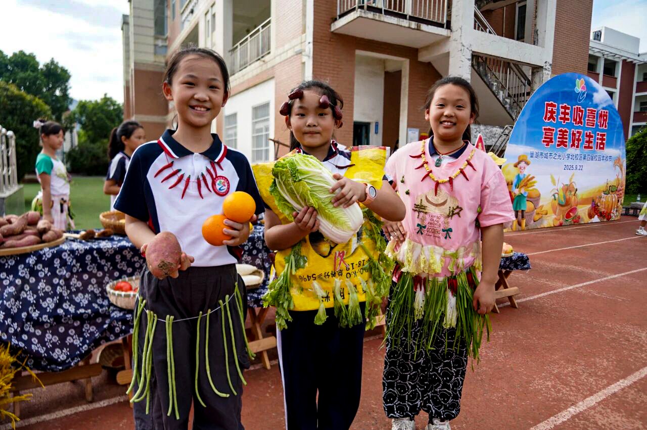 9月22日,由安徽省巢湖市城市之光小学关工委举办的“庆丰收喜悦 享生活美好”第四届校园丰收节热闹启幕,蔬菜瓜果展、丰收T台秀、趣味运动会、丰收集市轮番登场,孩子们在欢声笑语中触摸丰收、体验劳动、读懂了“粒粒皆辛苦”。