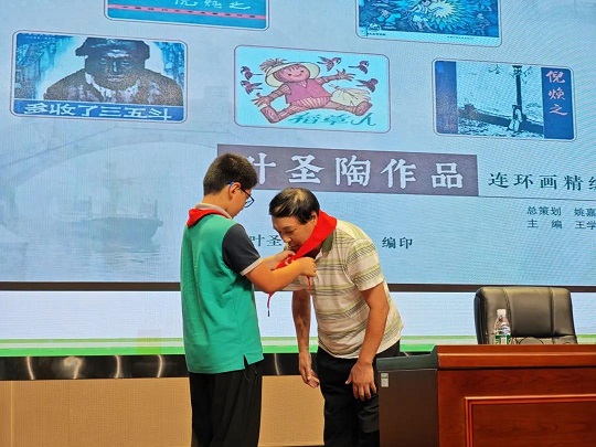 本次活动由王甜甜老师主持,文征明实验小学特聘校外文化辅导员“五老”姚嘉康老师主讲,三年级全体师生共同到场聆听。姚嘉康老师是全国20位“奉献社会”、“藏家典范”人物之一,是中国收藏家协会书报刊分会副会长、中国优秀收藏专家,被评为相城时代新人。