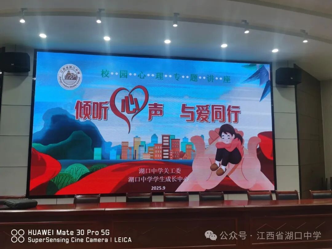 江西省九江市湖口中学关工委在校图书馆阶梯教室成功组织举办了以“倾听心声,与爱同行”为主题的校园心理关怀讲座。本次活动是校关工委持续关注青少年健康成长系列举措之一,旨在特别帮助高一年级新生顺利度过心理适应期,实现全面健康发展。高一年级师生代表共200余人参加了讲座。