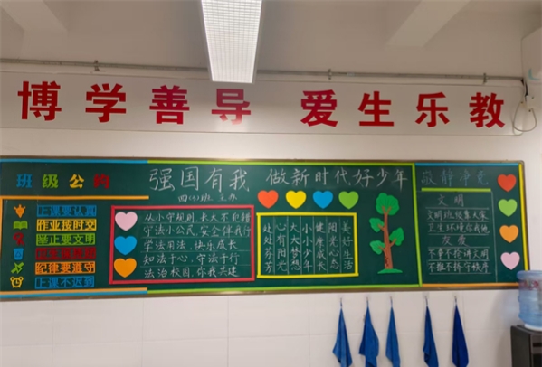 活动前期,各班级围绕“立德树人”根本任务,结合班级特色与学生年龄特点,确定展示主题。师生们分工协作,从内容策划、版面设计到素材搜集、动手制作,全程深度参与。黑板报上,工整的字迹、生动的插画与丰富的内容相得益彰,有的聚焦传统文化传承,讲述经典故事;有的紧扣安全教育主题,普及防护知识;还有的展现班级活动风采,记录成长点滴。展示墙则成为学生个性发展的舞台,书法作品、绘画创作、手工艺品、学习心得等琳琅满目,既彰显了学生的才艺,也体现了班级的精神风貌。展评过程中,学校评审小组,对各班级作品逐一打分,严格评选,最终评选出一、二、三等奖,为获奖班级颁发荣誉证书。