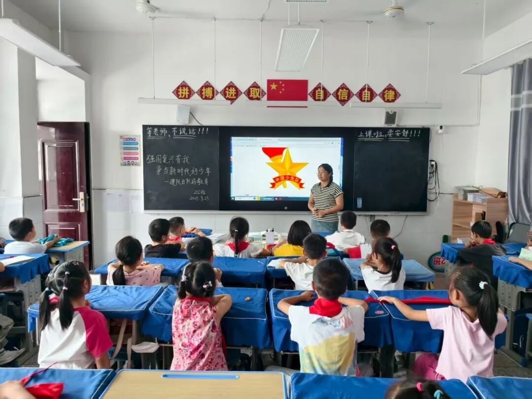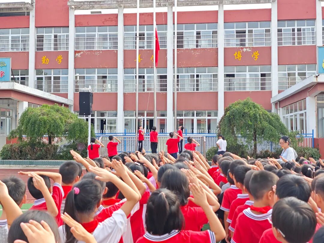 升旗仪式上,面对庄严的国旗,队员们聆听红色故事,感知抗战精神,在心中埋下传承红色信念的种子,开启了系列活动的序幕。各中队召开“红领巾心向党 抗战精神永传承”主题队会。队员们观看《小兵张嘎》《狼牙山五壮士》等抗战题材红色电影片段,直观感受抗战岁月的烽火硝烟;学唱《黄河大合唱》《在太行山上》等抗战歌曲,用激昂的歌声传递抗战精神.让队员们深入了解抗战历史,学习英雄榜样的无畏与担当。