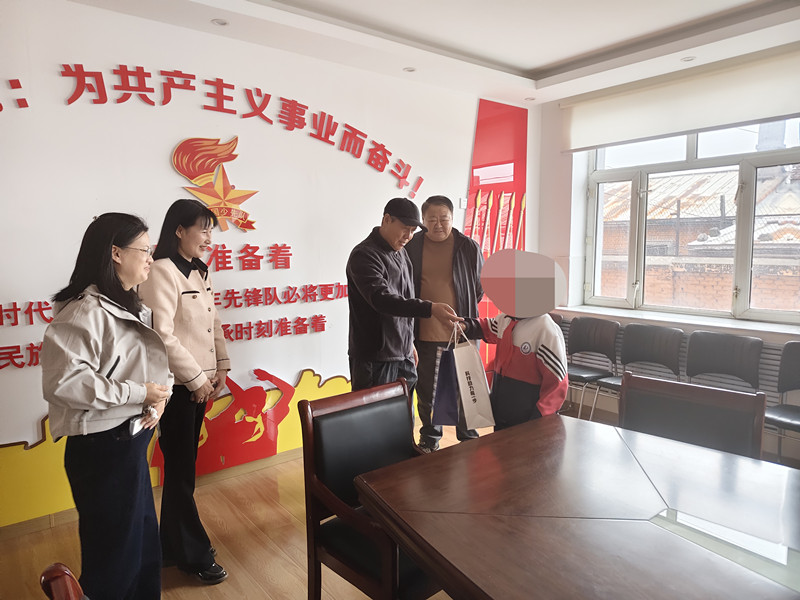 9月25日,黑龙江省齐齐哈尔市克东县关工委副主任孔德福、县关工委服务中心主任王睿、县教育关工委常务副主任常维国等一行四人,走进县三所中小学,对三名孤儿开展爱心助学活动,三所学校的关工小组组长和班主任老师参加活动。