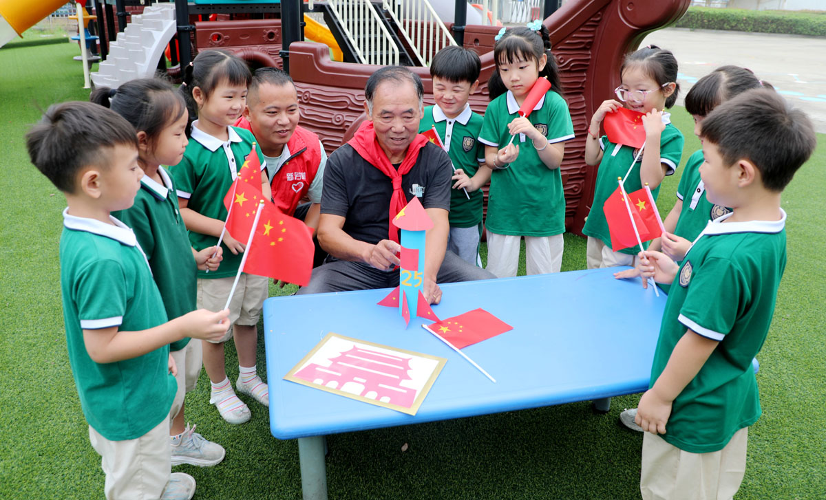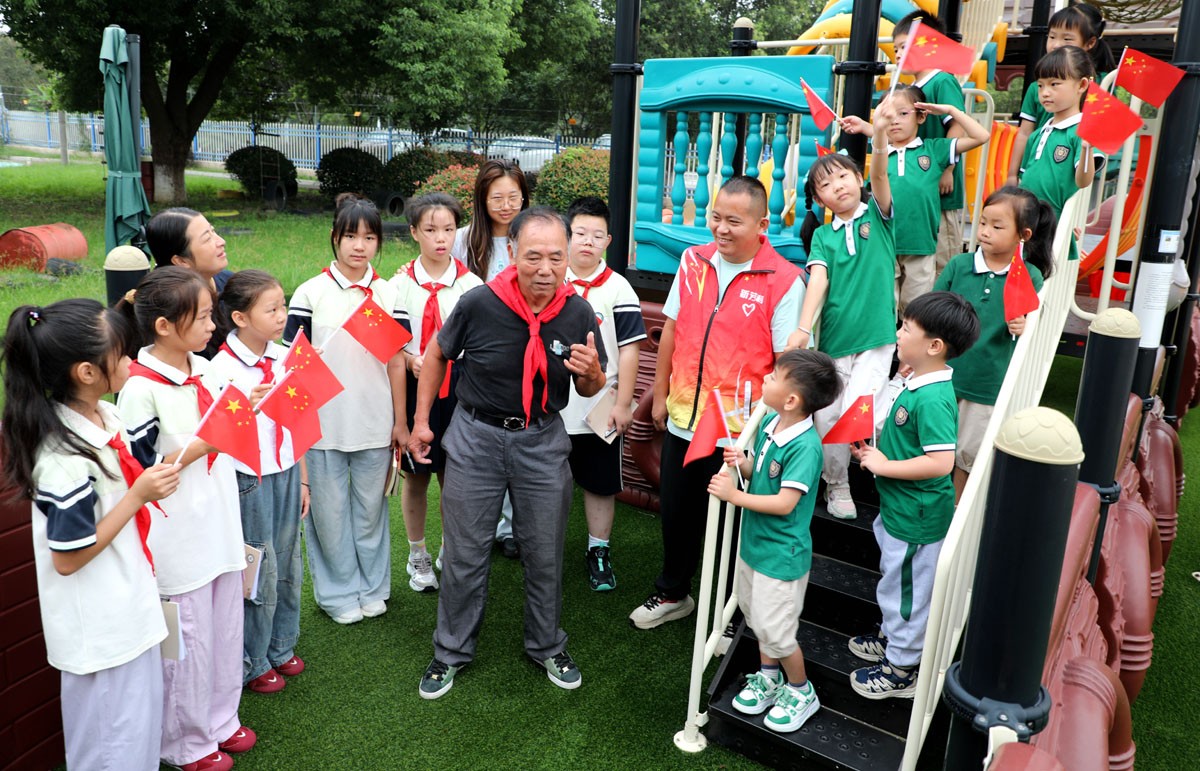 9月26日,江苏宜兴杨巷小学与新芳幼儿园联合邀请新芳村琅山自然村村民毛解放,在新芳幼儿园开展“寻访共和国同龄人”主题宣讲活动,让孩子们在真实故事中触摸时代脉搏,感受国家发展力量。