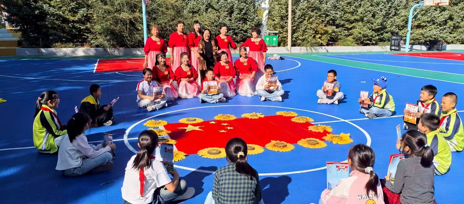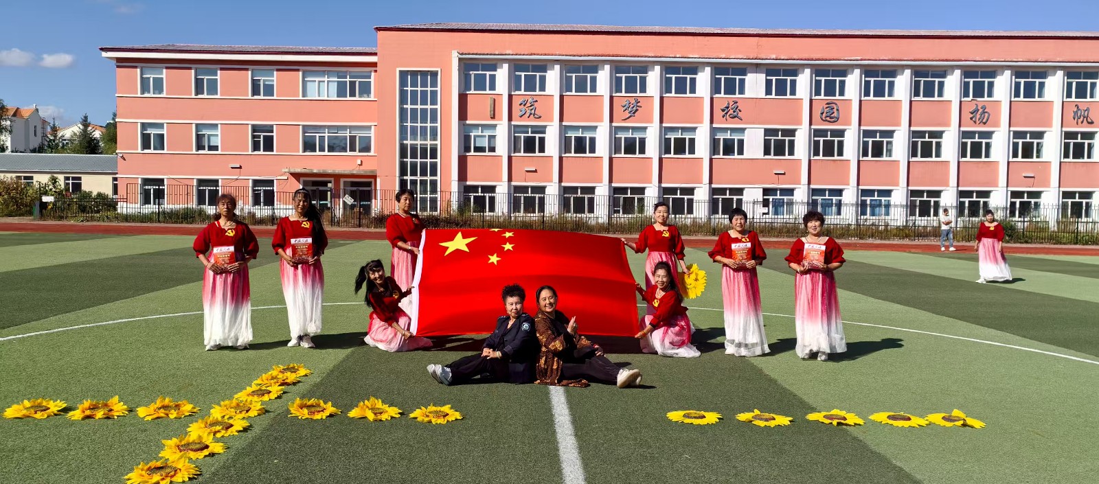 合影环节,大家有序排列,老同志们站在队伍前排,同学们手持向日葵围绕在身旁,金黄的花盘朝着国旗方向,形成一片“金色海洋”。“1——2——3,祝祖国生日快乐!”随着响亮的祝福声,相机快门定格下这一温馨瞬间:老人们眼角含笑,满是慈爱与期许;孩子们笑容灿烂,眼神里充满对祖国的热爱与对未来的憧憬。向日葵的金黄与国旗的鲜红交相辉映,成为操场上最动人的色彩。