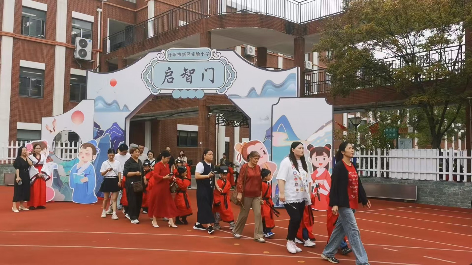 仪式开始,一年级的新生们身着传统服饰,在家长的陪伴下,缓缓穿过象征智慧与启迪的“启智门”。他们稚嫩的脚步声在校园内回荡,仿佛在宣告着他们对知识的渴望和对未来的憧憬。