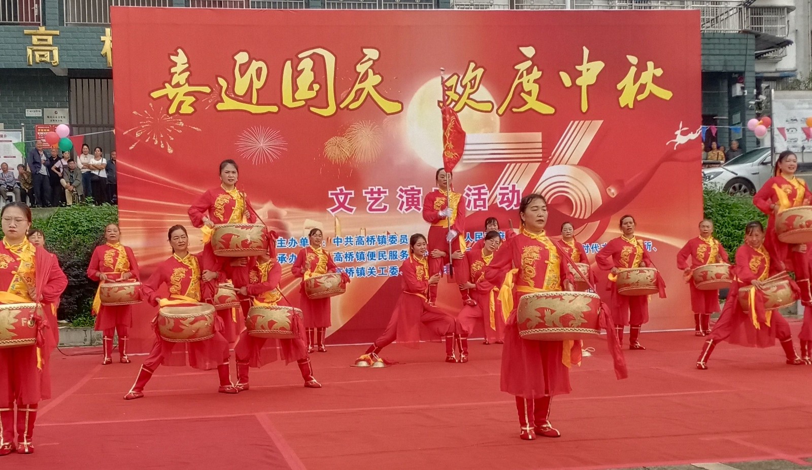 文艺演出在一首《振兴锣鼓》的精彩表演中拉开序幕,接着,高桥镇老年学校表演的大合唱《没有共产党就没有新中国》、《共筑中国梦》、舞蹈《爱我中华》、高桥镇小学校表演的大合唱《我们是新时代的少年》陆续演出。