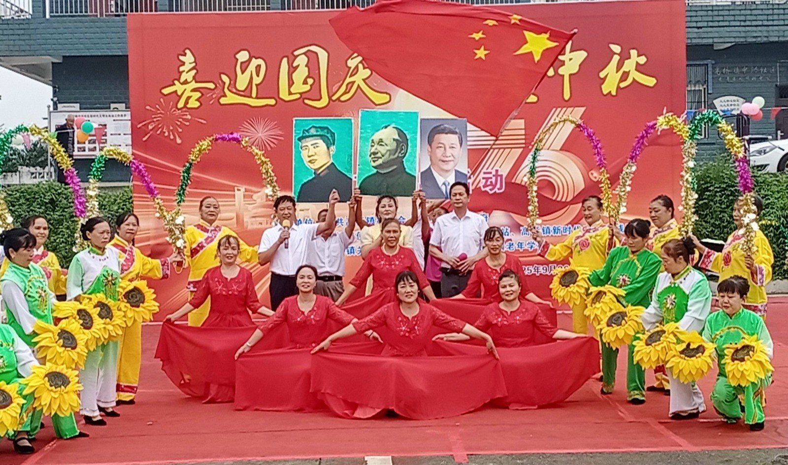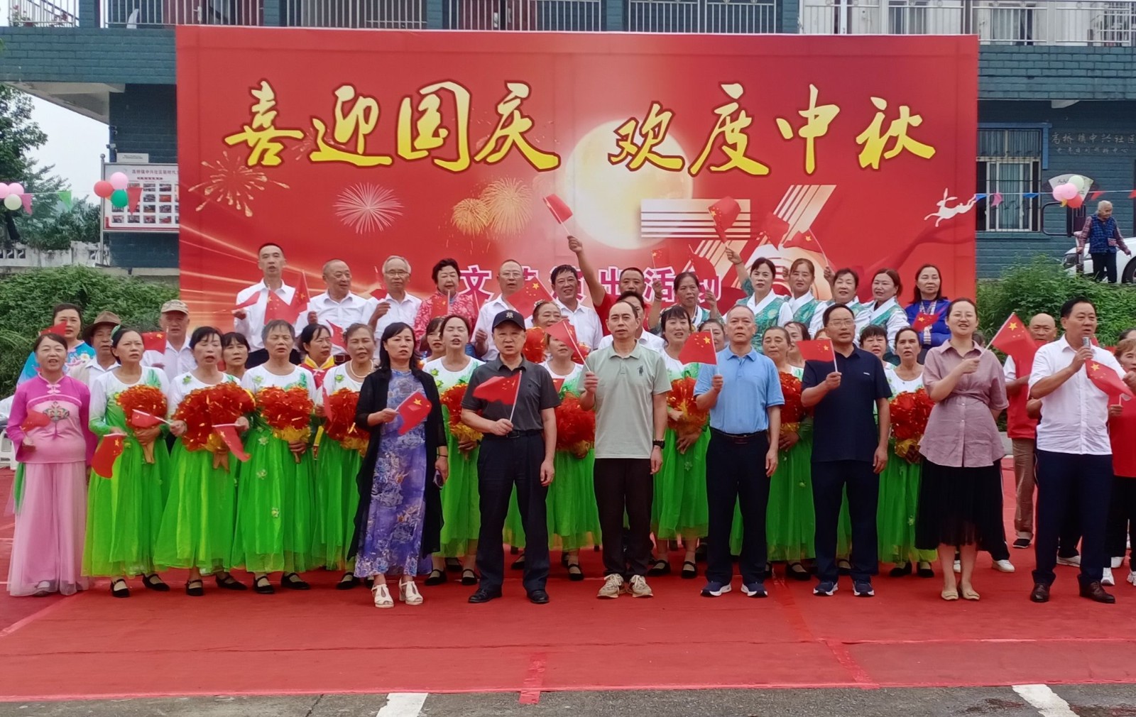 最后,全体演职人员和各级领导登台共同举行大合唱,活动在一首《歌唱祖国》的大合唱宏亮歌声中落下帷幕。