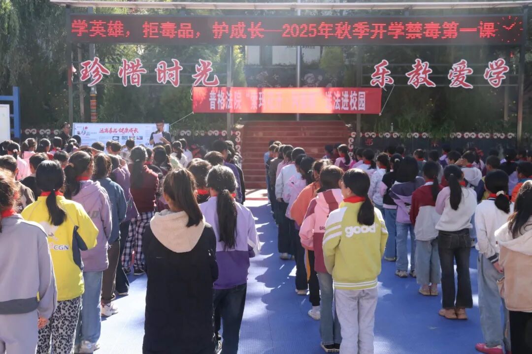 为深入推进普格县“索玛花开·阿都嘟”法治品牌建设,切实加强青少年毒品预防教育,筑牢校园禁毒安全防线,2025年9月25日,普格县关工委联合县法院走进普格县特尔果中心校,开展“学英雄、拒毒品、护成长—2025秋季开学第一课”暨禁毒先驱林则徐生平史迹全国“十展联馆”活动,以“防范青少年药物滥用”为核心宣传主题,为同学们带来一堂生动且深刻的禁毒教育课。