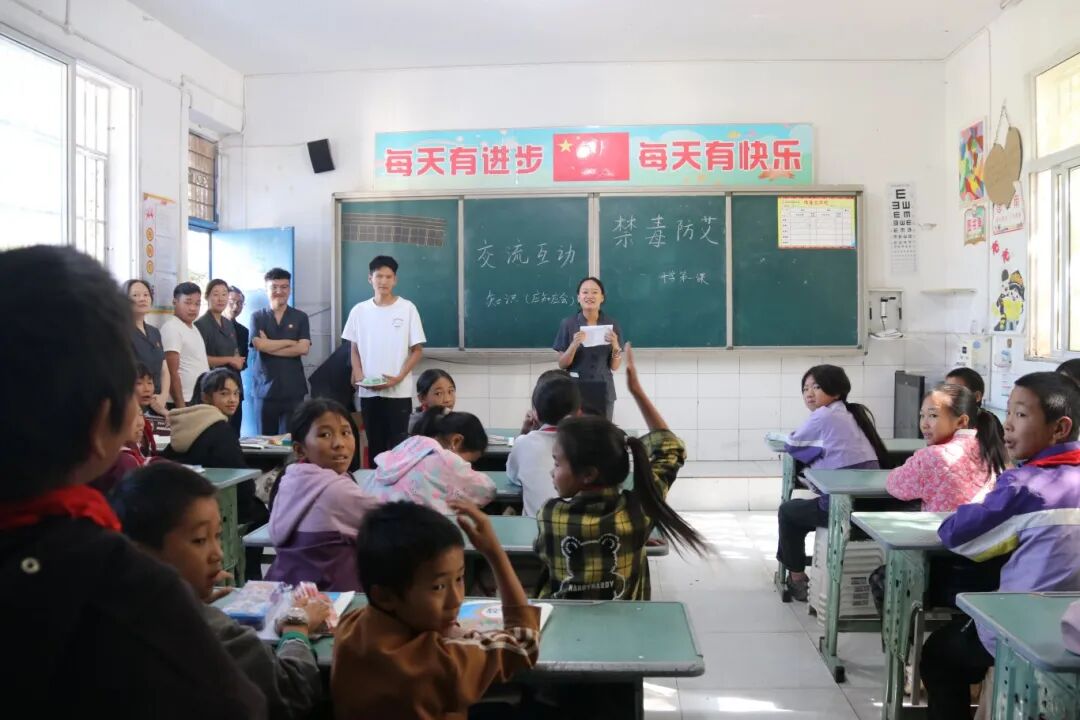 法治课后,针对高年级同学组织开展了“禁毒知识大闯关活动”,以问答互动的形式检验学习成果。现场同学们积极举手、踊跃作答,氛围热烈。县关工委办工作人员为表现突出的同学发放了文具作为奖励,进一步激发了大家学习禁毒知识的积极性。