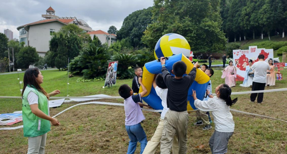 趣味互动环节中,孩子们踊跃参与了“大尾巴狼”“趣味排球”“玉兔钓月饼”等游戏。“大尾巴狼”游戏中,大家你追我赶,笑声不断;“拼图+气球守护挑战”考验着参与者的耐心与协调能力;“趣味排球”则通过团队协作增强了孩子之间的默契。参加完游戏的张同学笑着说:“今天很开心,认识了新朋友,下次还要来。”