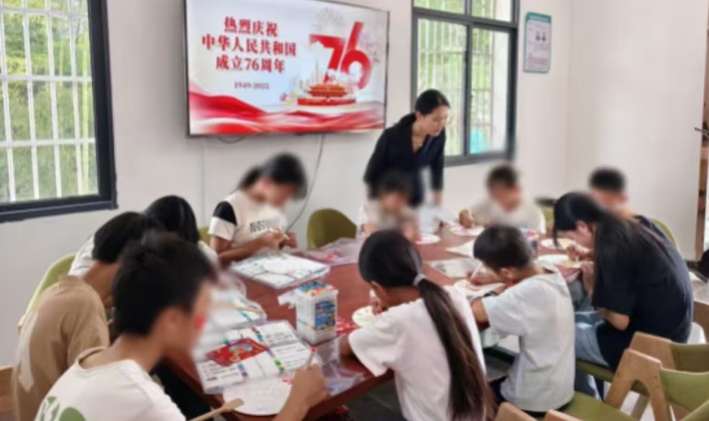 志愿者们将精心准备的书包、文具、月饼等礼品逐一发放到每个孩子手中。在国庆主题扇子绘画环节,孩子们在志愿者的指导下,用手中的画笔在素白扇面上描绘对祖国的热爱和祝福。五星红旗、天安门、和平鸽等元素在孩子们的创作下栩栩如生。“我画的是五星红旗在天安门前飘扬,祝福祖国越来越强大!”一位参加活动的孩子兴奋地展示自己的作品。