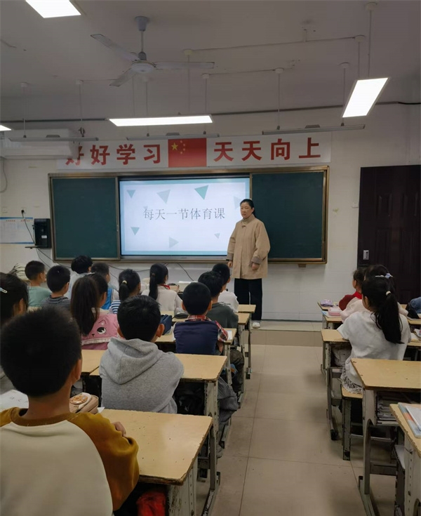 班会上,各班班主任向学生和家长代表详细解读了“每天一节体育课”的具体内容。课程设置上,一至六年级每天将安排一节40分钟的体育课,雨天或特殊天气则调整为室内体育活动,如体能小游戏、运动知识讲解等。教学内容方面,低年级以基础动作训练、趣味体育游戏为主,培养学生运动兴趣与身体协调性;中 高年级逐步加入球类技巧、田径项目等专项运动技能教学,同时融入体育健康知识、安全运动常识,还将开展校级体育社团活动,如排球、足球、武术、体操等,满足学生个性化发展需求。评价方式也打破单一指标,结合课堂参与度、运动技能掌握情况、50米跑、坐位体前屈、一分钟跳绳等体能测试结果综合评定,更注重学生的进步与成长。班会还强调了家长配合事项,包括为孩子准备适宜的运动服装、及时告知孩子特殊体质情况、保障孩子充足睡眠与均衡营养等。