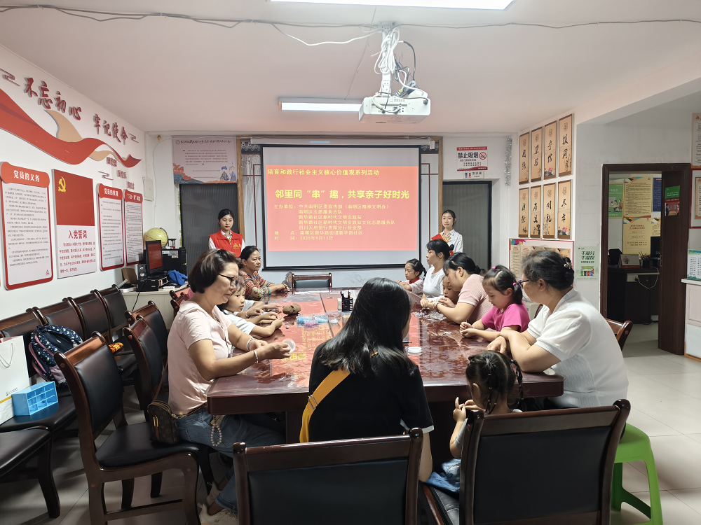 为促进社区亲子互动与邻里和谐,9月23日,贵阳市南明区新华路街道关工委携手四川天府银行贵阳分行,共同组织开展“亲子同‘串’趣,共享好时光”手工艺体验活动,吸引辖区亲子家庭积极参与,现场气氛温馨热烈。