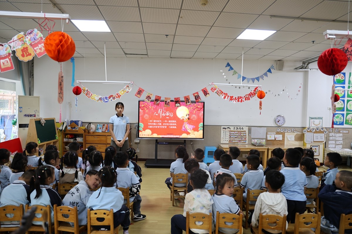 活动伊始,教师通过生动的讲解和图片展示,向幼儿介绍国庆节的意义、国旗的象征,以及中秋吃月饼、石榴寓意“多子多福”的传统习俗,帮助幼儿建立对节日的认知。